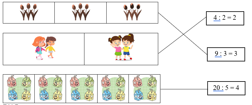 a. Có 12 quyển sách, chia đều cho 4 em học sinh, mỗi em được 3 quyển sách.