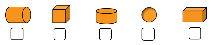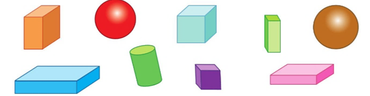 Hình B là khối lập phương, hình C là khối hộp chữ nhật, hình D là khối cầu.