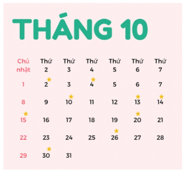 (c) Trong tháng 10 có ............ ngày thứ Hai.