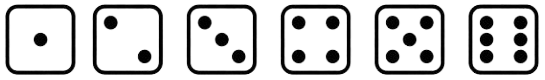 (b) Bạn An tung một con xúc xắc để chơi cờ cá ngựa cùng các bạn. Trong hình vẽ dưới đây là khả năng số chấm xuất hiện khi An tung xúc xắc