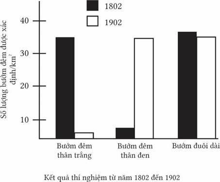 c. Số lượng bướm đêm đuôi dài ít thay đổi vì màu sắc của chúng giống như màu sắc bướm đêm thân đen.