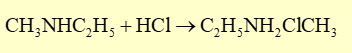 Khi cho hỗn hợp hai amine trên phản ứng với nitrous acid thì chỉ có amine bậc I là ethyl amine phản ứng với acid HNO2 để sinh ra khí N2 theo phương trình: