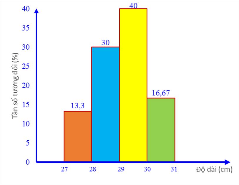 3) Vẽ biểu đồ tần số tương đối ghép nhóm ở dạng biểu đồ cột biểu diễn mẫu số liệu trên.