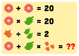 Dứa + thập lục × 2 nho = 3 + 5 × (2 × 2) = 23