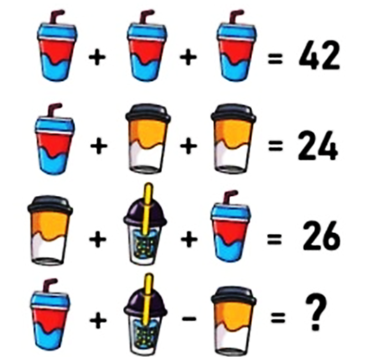 Cốc nước + bánh mì + bánh mì = 20. Suy ra: 2 × bánh mì = 10, suy ra: bánh mì = 5