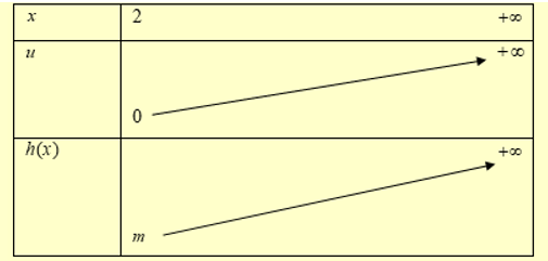 \( \Leftrightarrow \left[ {\begin{array}{*{20}{l}}{ - 2 \le h\left( x \right) \le 0}\\{h\left( x \right) \ge 2}\end{array},\forall x \in \left( {2; + \infty } \right) \Rightarrow m \ge 2} \right.\)
