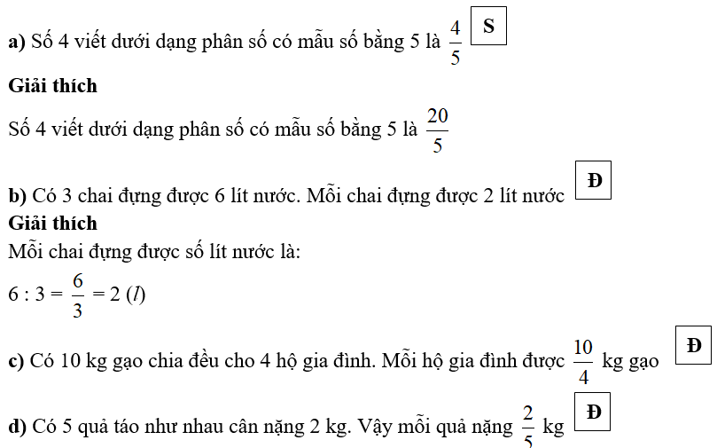 a) Số 4 viết dưới dạng phân số có mẫu số bằng 5 là __