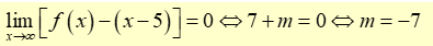 \(y = x - 5\) là đường tiệm cận xiên của đồ thị hàm số, ta có