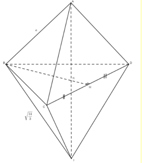 Mặt khác \({\rm{sin}}\widehat {{A_1}} = \frac{{BI}}{{AI}} \Rightarrow AI = \frac{{BI}}{{{\rm{sin}}\widehat {{A_1}}}} = \sqrt {14} \).