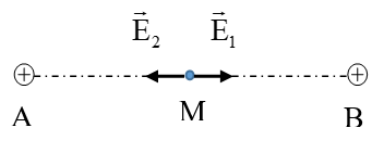 Cho 2 điện tích điểm q1 = 5.10-9 C; q2 = 5.10-9 C lần lượt đặt tại 2 điểm A, B cách nhau 10 cm trong chân không. Xác định cường độ điện trường tại điểm M nằm tại trung điểm của AB ?