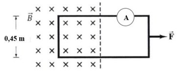 Trong thời gian cạnh AB của khung chuyển động trong từ trường, để khung chuyển động đều với tốc độ \(3,3\;{\rm{m}}/{\rm{s}}\) thì lực kéo \(\vec F\) có độ lớn bằng