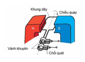 Một máy phát điện xoay chiều đơn giản gồm khung dây quay đều trong từ trường như hình bên.