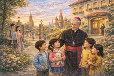 Buổi chiều thứ Bảy, đoàn của chúng tôi quyết định đến thăm một cô nhi viện ở Mát-xcơ-va. Trước khi đến đây, tôi đã được nghe kể về Đức Cha Xa-vi-ê, biết rằng Cha nói tiếng Việt rất giỏi. Thế nhưng, tôi vẫn không khỏi bất ngờ khi thấy các em nhỏ ở đây đều có thể nói được tiếng Việt. Nghe ra mới biết, các em nhỏ trong viện chủ yếu là cô nhi người Việt Nam. Tôi xúc động nhìn Đức Cha.