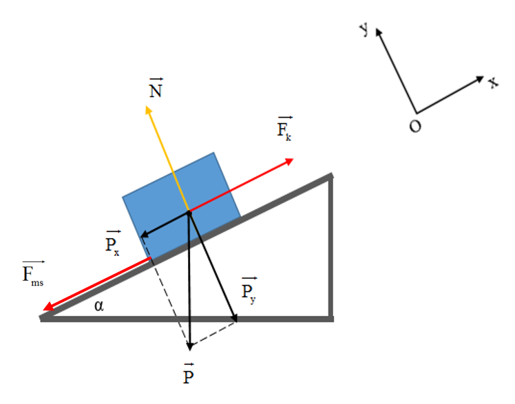 \[ \Rightarrow \] Fk = Px + Fms = mg.sinα + µ.mg.cosα