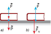 Cuốn sách nằm cân bằng do chịu tác dụng của hai lực cân bằng là trọng lực và lực đẩy của bàn, P = F.