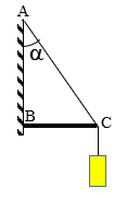 (1 điểm). Một vật có trọng lượng P = 40 N được treo vào tường nhờ một dây AB. Muốn cho vật ở xa tường, người ta dùng một thanh chống nhẹ nằm ngang, một đầu tì vào tường, còn đầu kia tì vào điểm B của dây như hình vẽ. Cho biết dây hợp với tường một góc 300. Cho biết phản lực của thanh có phương dọc theo thanh. Xác định độ lớn lực căng của dây treo CA.