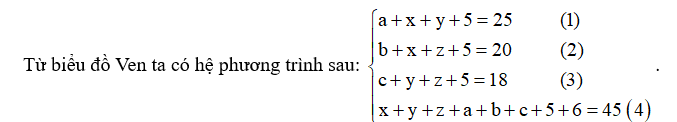 Gọi \[a,\,\,b,\,\,c\] theo thứ tự là số học sinh chỉ thích môn Văn, Toán, Tiếng Anh;