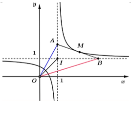 Ta có \(y' = \frac{{ - 2}}{{{{\left( {2x - 2} \right)}^2}}}\). Phương trình tiếp tuyến \(\Delta \) tại điểm \(M\left( {{x_0};{y_0}} \right)\) có dạng \(y = \frac{{ - 2}}{{{{\left( {2{x_0} - 2} \right)}^2}}}\left( {x - {x_0}} \right) + \frac{{2{x_0} - 1}}{{2{x_0} - 2}}\).\(A = \Delta \cap {d_1} \Rightarrow A\left( {1\,;\,\,\frac{{{x_0}}}{{{x_0} - 1}}} \right)\,;\,\,B = \Delta \cap {d_2}\)\( \Rightarrow B\left( {2{x_0} - 1\,;\,\,1} \right)\,;\,\,\overrightarrow {IB} = \left( {2{x_0} - 2\,;\,\,0} \right)\,;\,\,\overrightarrow {IA} = \left( {0\,;\,\,\frac{1}{{{x_0} - 1}}} \right)\).