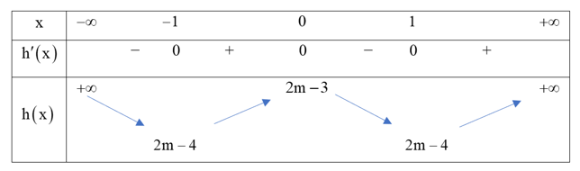 Xét hàm số \(y = h\left( x \right) = {x^4} - 2{x^2} + 2m - 3\) có \(h'\left( x \right) = 4{x^3} - 4x\).