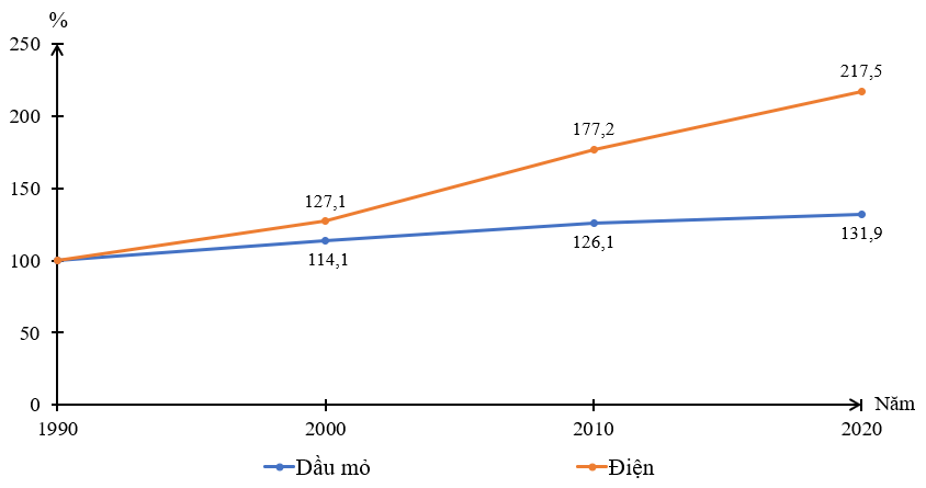 Điện tăng nhanh hơn dầu mỏ và tăng thêm 117,5%.