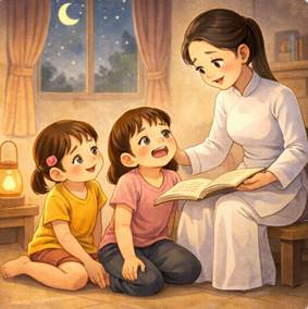 Khi em Na vào lớp Một, ở nhà một mình Nết buồn lắm, chỉ mong Na chóng tan trường về kể chuyện ở trường cho Nết nghe. Na kể rất nhiều về cô giáo: tà áo dài của cô trắng muốt, miệng cô cười tươi như hoa, cô đi nhẹ nhàng đến bên từng học sinh dạy các bạn viết, vẽ... Nghe Na kể, Nết ước mơ được đi học như Na.