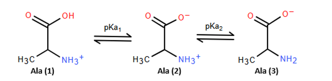 a). Dạng ion lưỡng cực Ala (2) nằm giữa pKa1 và pKa2 nên Ala có: