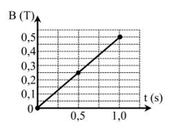 Một vòng dây kín có diện tích \(50{\rm{d}}{{\rm{m}}^2}\) đặt trong từ trường đều sao cho véc tơ cảm ứng từ song song và cùng chiều với véc tơ đơn vị pháp tuyến của mặt phẳng vòng dây. Độ lớn cảm ưng từ biến thiên theo thời gian như đồ thị hình bên.