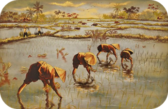 Các động từ chỉ hoạt động của con người trong bức tranh là: cấy lúa.