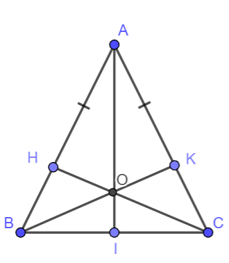 OB = OC (\[\Delta HOB = \Delta KOC\]) \( \Rightarrow \) O thuộc đường trung trực BC