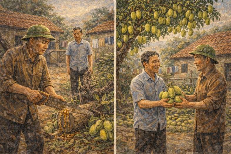 Mùa xoài lại đến. Lần này, ba tôi cũng đem biếu chú Tư vài chục quả. Tôi liền phản đối. Ba chỉ nhỏ nhẹ khuyên tôi: