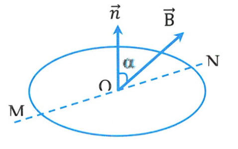Một khung dây hình tròn diện tích S = 15cm2 gồm N = 10 vòng dây, đặt trong từ trường đều có hợp với véctơ pháp tuyến của mặt phẳng khung dây một góc a = 30o như hình vẽ. Biết B = 0,04T. Tính độ biến thiên của từ thông qua khung dây khi quay khung dây quanh đường kính MN một góc 180o.