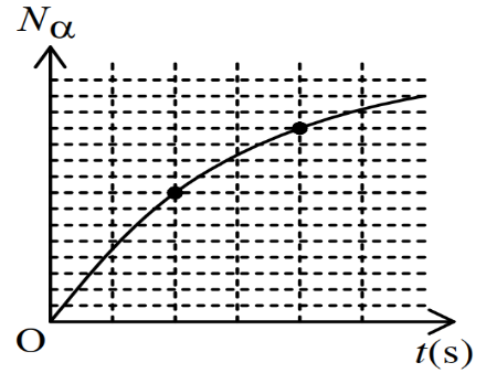 Hình vẽ biểu diễn số hạt α được phát ra từ một chất phóng xạ α theo thời gian t. Thang đo được sử dụng trong hình vẽ ứng với mỗi ô nằm ngang là 4s. Chu kì bán rã của chất phóng xạ là: