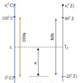 Trong thang nhiệt Z, khoảng cách từ −20oZ đến 60oZ được chia thành 80 khoảng, độ lớn một khoảng là b