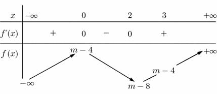 Xét hàm số \(y = {x^3} - 3{x^2} + m - 4\).