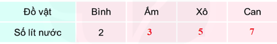 Mỗi đồ vật đựng được bao nhiêu lít nước?