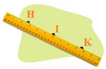 Dùng thước thẳng kiểm tra ta thấy ba điểm H, I, K cùng nằm trên 1 cạnh của thước. Do đó ba điểm H, I, K thẳng hàng.