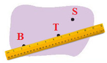 Dùng thước thẳng kiểm tra ta thấy ba điểm B, T, S không cùng nằm trên 1 cạnh của thước. Do đó ba điểm B, T, S không thẳng hàng.