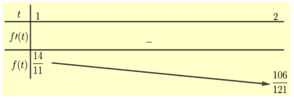 Dựa vào bảng biến thiên \( \Rightarrow m \le \frac{{106}}{{121}}\)