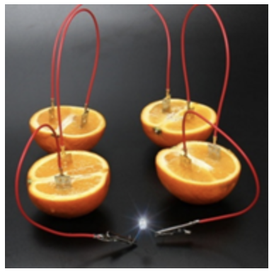 Một nhóm học sinh làm thí nghiệm chế tạo pin điện hóa bằng quả chanh với điện cực bằng Zn và Cu để làm một bóng led sáng rõ được như hình ảnh sau: