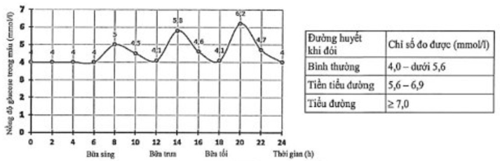 Đo chỉ số đường huyết khi đói của một người, thu được kết quả thể hiện qua đồ thị sau: