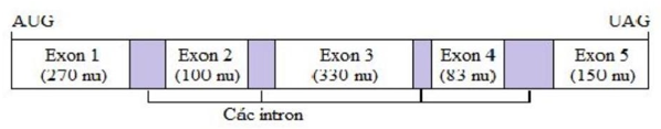 Bao gồm: Exon 1: 270 nu, Exon 2: 100 nu, Exon 4: 83 nu ,Exon 5: 150 nu