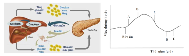 b) Tuyến tụy ngừng tiết insulin tại thời điểm D.