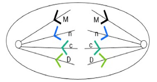Xét 1 cơ thể đực lưỡng bội có n cặp NST tương đồng, trên mỗi NST xét 1 gene có hai allele, tất cả các cặp gene đều ở trạng thái dị hợp tử. Hình vẽ sau mô tả một giai đoạn của 1 tế bào của cơ thể đang thực hiện quá trình giảm phân. Biết rằng quá trình này không xảy ra đột biến. Số lượng NST trong tế bào 2n tham gia giảm phân là bao nhiêu ?