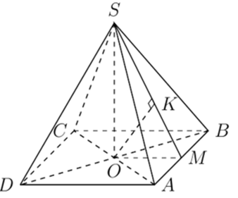 Cho hình chóp tứ giác đều có cạnh đáy bằng , khoảng cách giữa hai đường thẳng và bằng .
