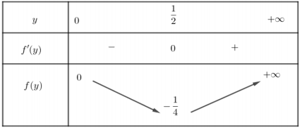 Xét hàm số \(f(y)={y}^{2}-y\) trên \((0,+∞)\)