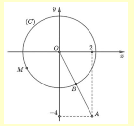Từ (2)suy ra điểm \(M\) thuộc hình tròn \(\left( C \right)\) có tâm \(O\left( {0;0} \right)\) và bán kính \(R = \sqrt 5 \).