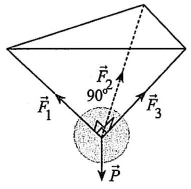 Xét tứ diện đều \(SABC\) có các cạnh \(SA,SB,SC\) biểu diễn độ lớn các lực căng dây và \(SP\) biểu diễn độ lớn của trọng lực tác dụng lên vật nặng \(S\).