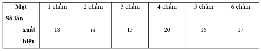 a) Mặt 2 chấm xuất hiện ít lần nhất. Xác suất thực nghiệm xuất hiện mặt 2 chấm là: \(\frac{{14}}{{100}} = 0,14\).