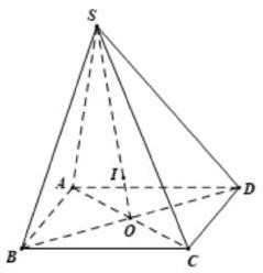 \( = 5M{I^2} + I{S^2} + I{A^2} + I{B^2} + I{C^2} + I{D^2} + 2\overrightarrow {MI} \left( {\overrightarrow {IS} + \overrightarrow {IA} + \overrightarrow {IB} + \overrightarrow {IC} + \overrightarrow {ID} } \right)\)\( = 5M{I^2} + I{S^2} + I{A^2} + I{B^2} + I{C^2} + I{D^2} + 2\overrightarrow {MI} \left( {\overrightarrow {IS} + 4\overrightarrow {IO} + \overrightarrow {OA} + \overrightarrow {OB} + \overrightarrow {OC} + \overrightarrow {OD} } \right)\)\( = 5M{I^2} + I{S^2} + I{A^2} + I{B^2} + I{C^2} + I{D^2}\).
