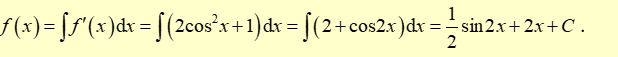 Vì \(f\left( 0 \right) = 4 \Rightarrow C = 4 \Rightarrow f\left( x \right) = \frac{1}{2}{\rm{sin}}2x + 2x + 4\).
